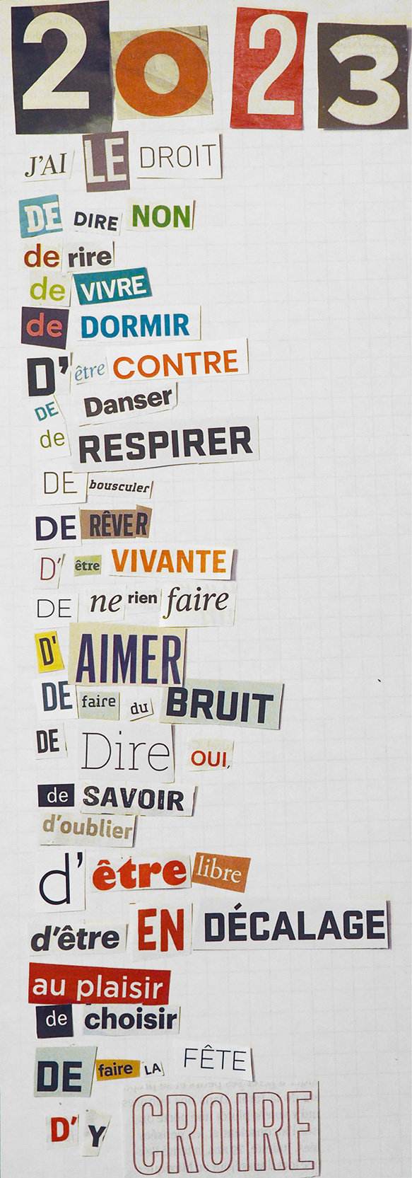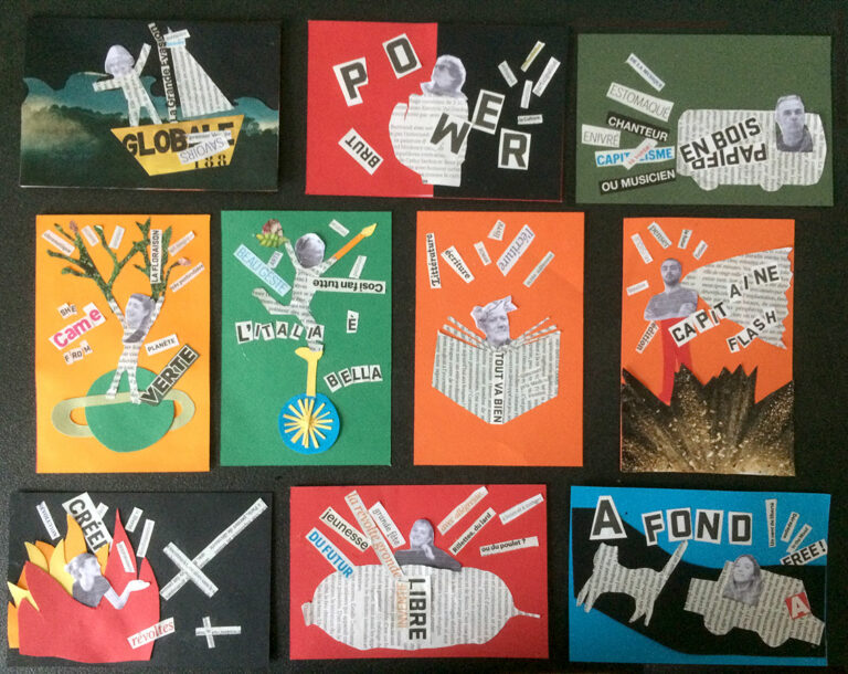 Collages > Pour des occasions différentes, je réalise des collages de formats variés, de la carte postale au 40×60 cm.
