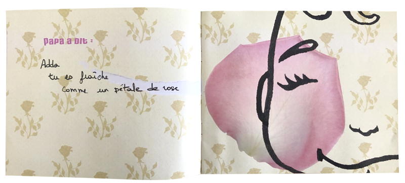 Recette de famille > Adda nait, à qui ressemble-t-elle ? Une collaboration avec Stefan Rooy pour les dessins. Dessins et photographies. Autoproduction 2007.